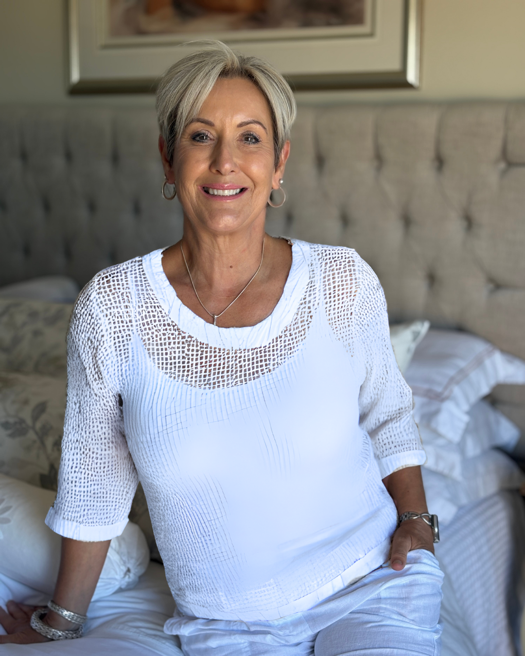 The mesh adds a hint of texture while maintaining softness and stretch, gently skimming the body without clinging. Whether styled with tailored trousers or relaxed linens, the Mila brings understated elegance to any look.